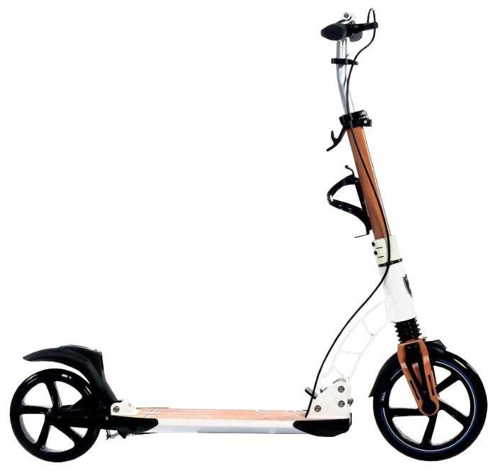 Хорошие амортизаторы, два тормоза, регулируемая ручка, не скользящая платформа. Дизайн симпатичный.