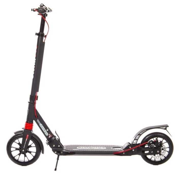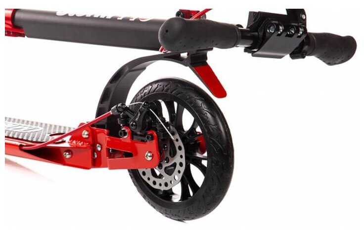 - Удобные ручки с резиновым покрытием и не скользкая дека предотвращают усталость рук и ног во время езды.