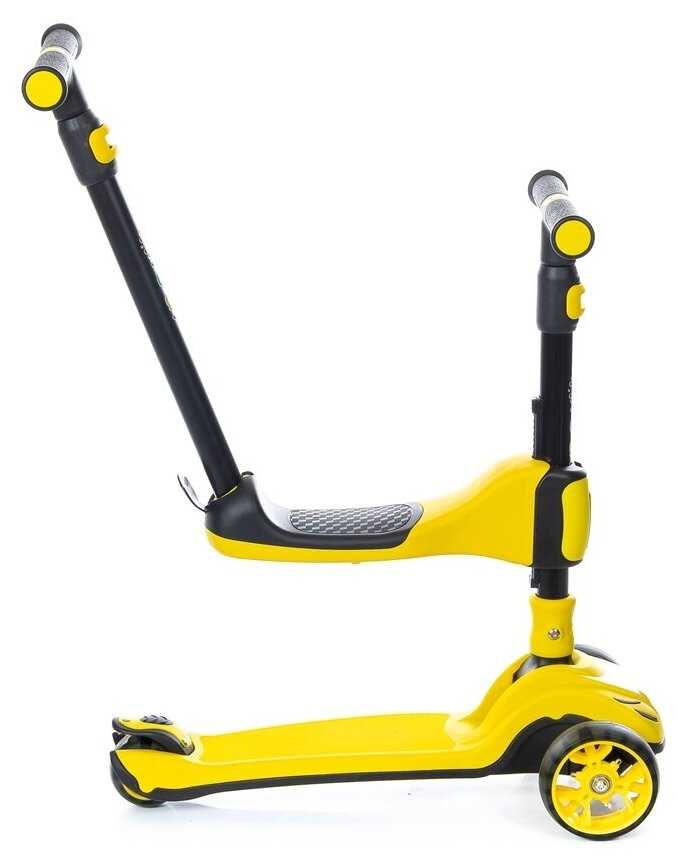 стул крепится на руль - - достаточно массивный и слишком плавный на ход для того чтобы кататься на нем как на самокате