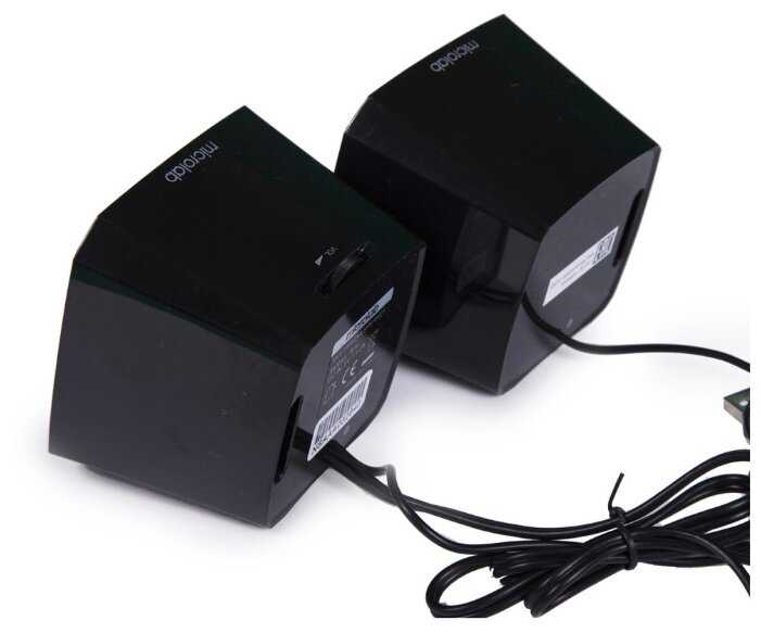 - + Питание через USB, для колонок за 500р довольно неплохой звук, не фонят в отличии от дешёвых собратьев питающихся от 220в.