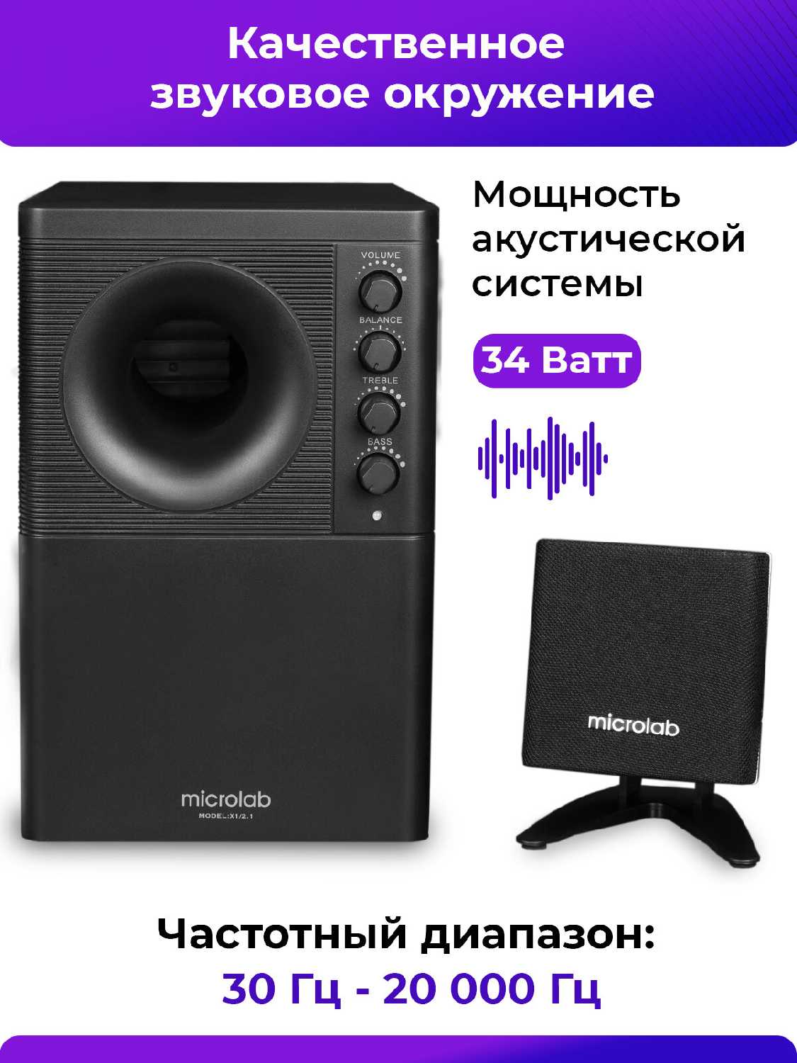 Максимальная мощность акустической системы : | 34 Вт |