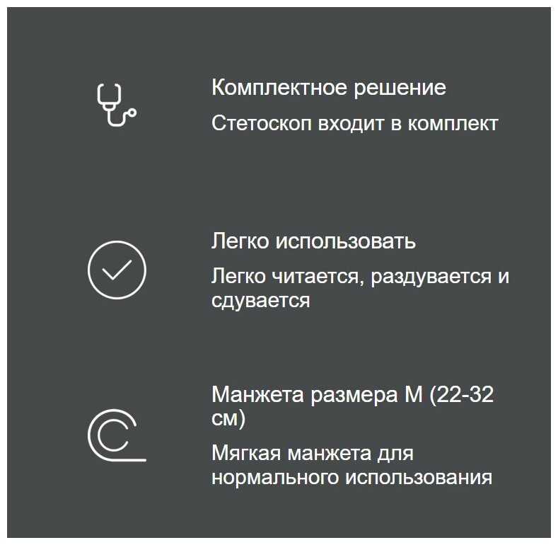 - + Манжета не перетягивает руку, измерить можно самостоятельно