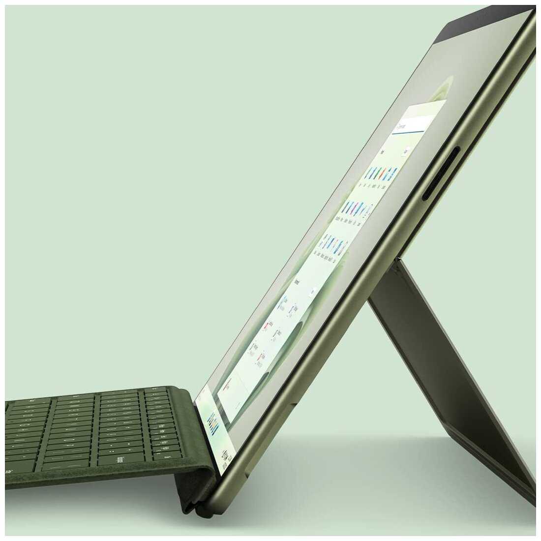 - Регулируемая подставка с углом наклона до 165° обеспечивает устойчивость даже на коленях, а магнитное крепление Type Cover превращает устройство в ноутбук за секунды.