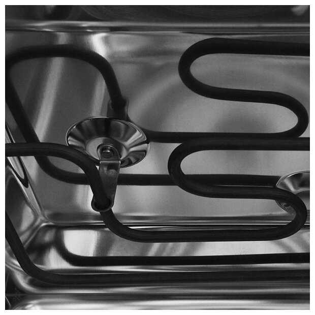 - Открытый нагревательный элемент на потолке камеры накапливает брызги жира, недоступные для протирки без специальных щеток.