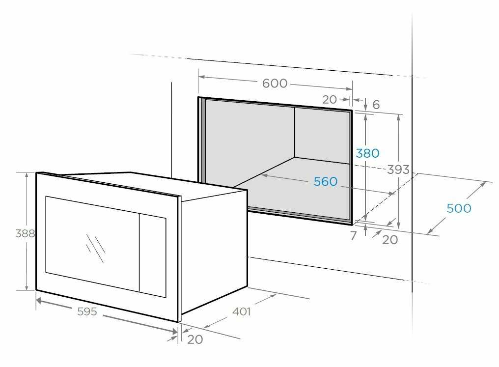- Полезное пространство камеры 20 л меньше стандартных 23–25 л у отдельно стоящих моделей, что затрудняет размещение крупной посуды (сковород, высоких контейнеров).