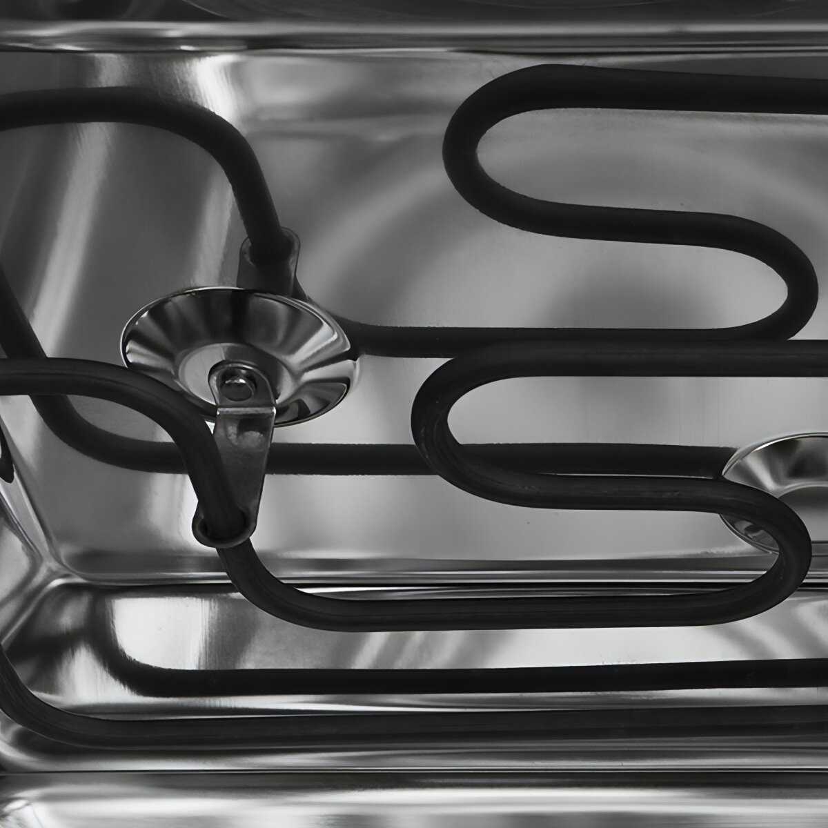 В отличие от тэновых аналогов, кварцевый элемент мгновенно достигает рабочей температуры и не требует предварительного разогрева. Он не создает помех при вращении стола, а его компактность увеличивает полезный объем камеры. Мощность в 1000 Вт обеспечивает быстрое запекание без необходимости использовать основную духовку. -