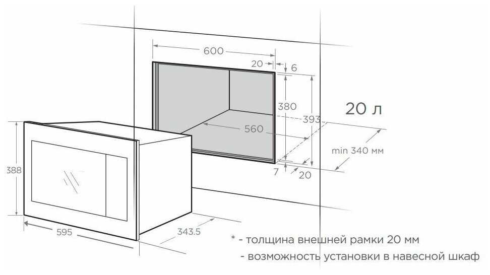 Глубина корпуса всего 34 см – критически важный параметр для узких пенал-ниш или верхних шкафов стандартных гарнитуров. В отзывах подтверждается, что это одна из самых компактных встраиваемых моделей на рынке. Шаблон в инструкции упрощает разметку креплений, а регулировочные винты на дверце позволяют идеально выровнять фасад.