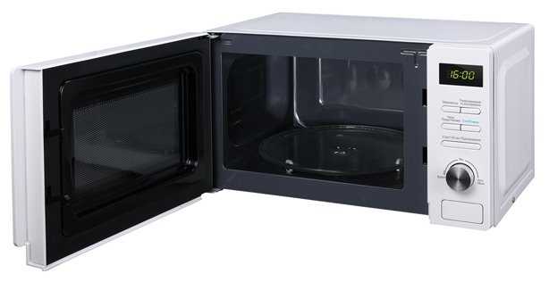 - + Симпатичный внешний вид, простая и интуитивно понятная панель управления, есть электронное табло-часы, которое в процессе разогрева пищи работает как индикатор остаточного времени разогрева, немаркая поверхность, открытие дверцы путем нажатия на кнопку-клавишу
