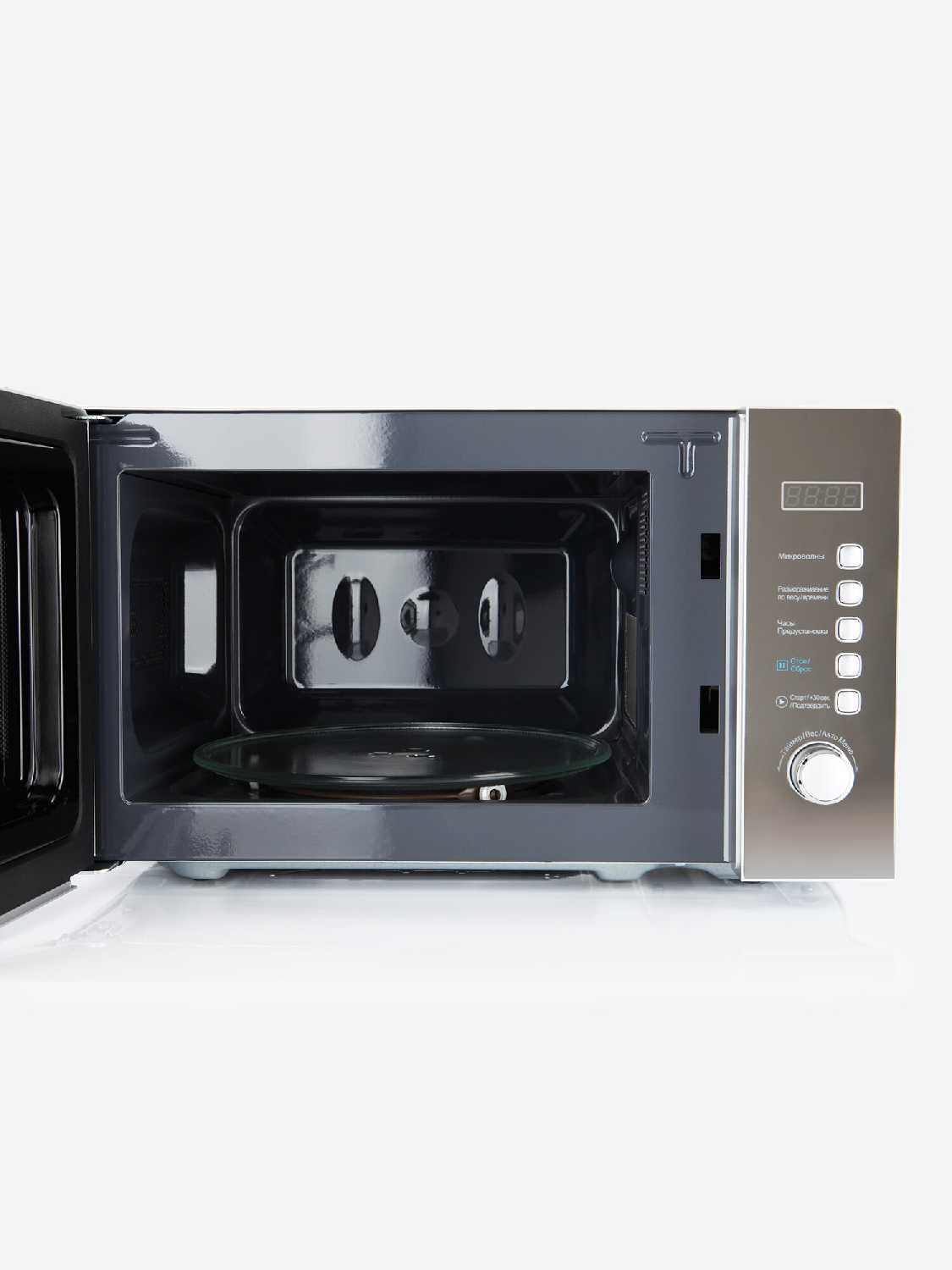 Заявленный объем 20 л не соответствует фактическому: пользователи измеряют полезное пространство как 13–13.5 л. Стандартные тарелки диаметром до 20 см помещаются, но большие контейнеры или пакеты для попкорна могут деформироваться о стенки. Вращающийся поддон увеличенного диаметра — плюс, но высокие емкости устанавливать неудобно. -