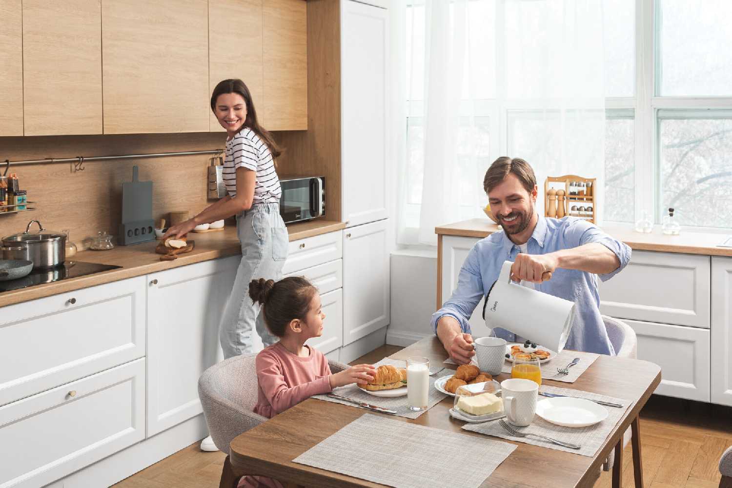 Чайник оптимален для ценителей эстетики: дизайн с белым корпусом и «деревянной» ручкой гармонично вписывается в скандинавский или минималистичный интерьер. Функция тонкой настройки температуры оценена гурманами чая, а холодные стенки и защитные системы безопасны для семей с детьми. -