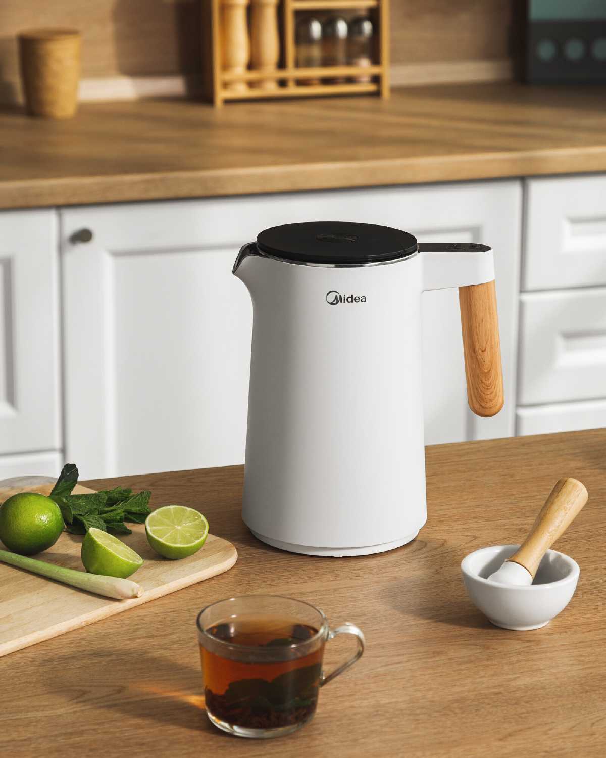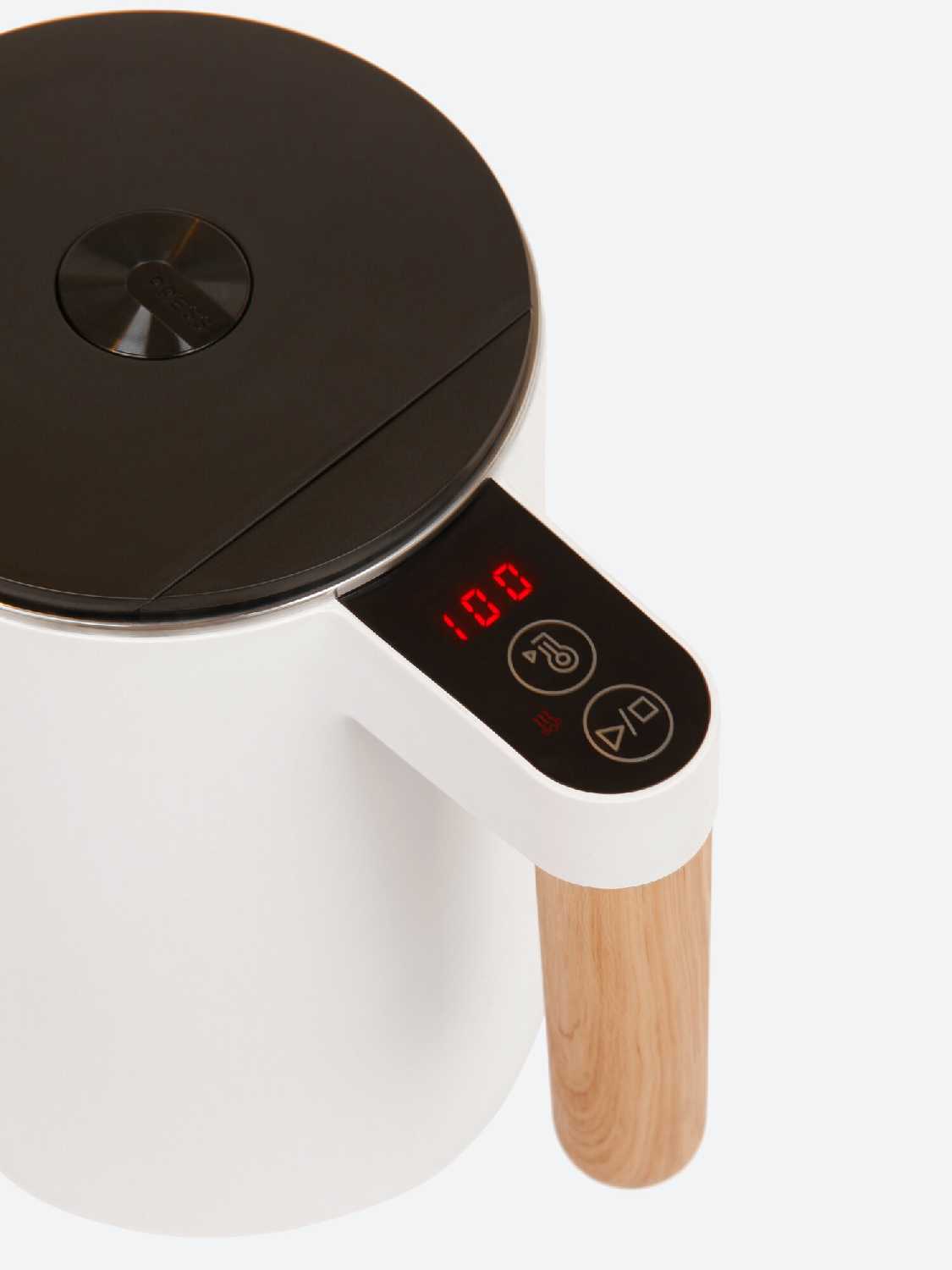 Чайник оптимален для ценителей эстетики: дизайн с белым корпусом и «деревянной» ручкой гармонично вписывается в скандинавский или минималистичный интерьер. Функция тонкой настройки температуры оценена гурманами чая, а холодные стенки и защитные системы безопасны для семей с детьми. -