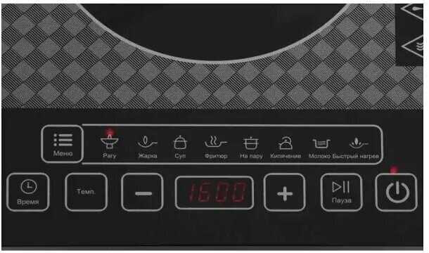 Сенсорные кнопки и выбор программ через меню вызывают неоднозначные оценки. Режимы «суп», «жарка», «рагу» по сути дублируют регулировку мощности, а не автоматизируют процесс, как в более дорогих моделях (например, отсутствует поэтапное снижение нагрева для риса). Таймер настраивается неудобно: минимальный шаг — 60 минут, что усложняет кратковременные задачи вроде подогрева котлет. Кнопка «пауза» ценится за мгновенное прерывание нагрева, но случайные касания влажной тряпкой часто сбивают настройки. Отдельно пользователи упоминают путаницу между режимами мощности (Вт) и условной температуры (°C): например, 60°C соответствует 120 Вт, но даже это вызывает бурление в малых кастрюлях.