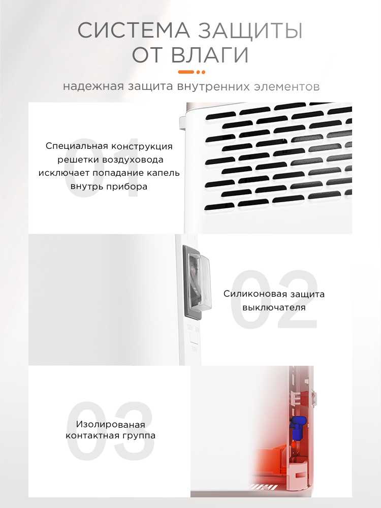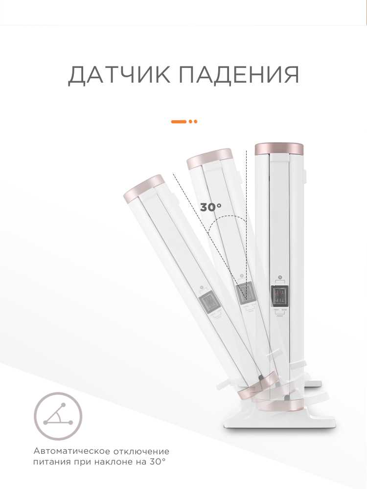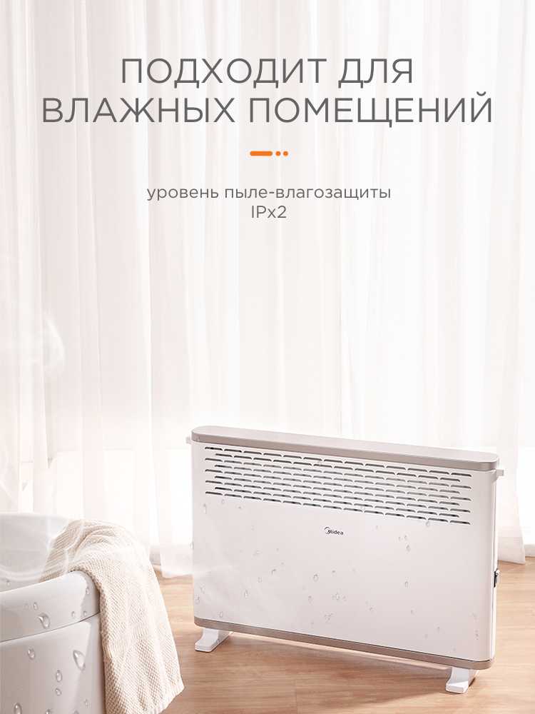 Конвектор обладает важными функциями безопасности: защитой от перегрева и датчиком опрокидывания, который отключает прибор при падении. Задняя стенка корпуса не нагревается до опасных температур, что позволяет ставить его относительно близко к мебели или стенам. На выключателях установлен силиконовый защитный экран, затрудняющий доступ для маленьких детей. -