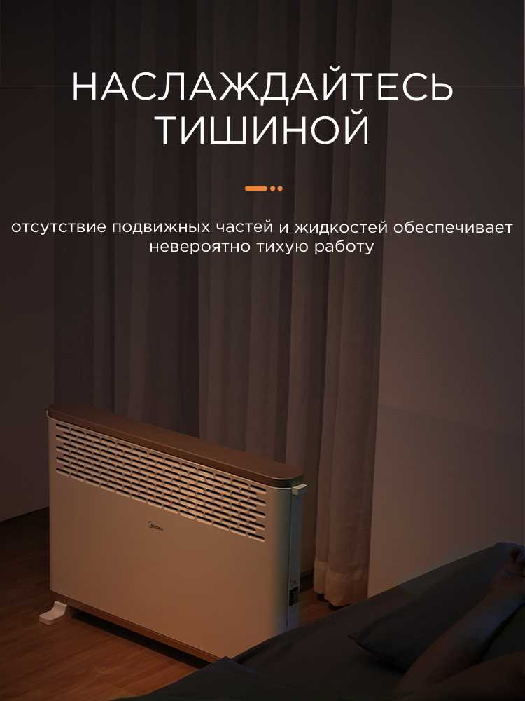 Уровень шума при работе является важным параметром, и оценки здесь неоднозначны. На минимальной мощности (800 Вт) устройство работает практически бесшумно, что позволяет использовать его в спальнях или детских комнатах без дискомфорта. Однако на мощности 1200 Вт и, особенно, на максимальной 2000 Вт появляется слышимый гул или "звон", который в полной тишине может быть заметен. Пользователи отмечают, что при работающем телевизоре или другом фоновом шуме он становится практически неслышимым, но для тех, кто крайне чувствителен к звукам во время сна, это может стать недостатком. Важно подчеркнуть, что в отличие от тепловентиляторов ("дуек") или масляных радиаторов, которые могут щелкать при нагреве и остывании, данный конвектор таких звуков не издает; легкий гул связан исключительно с процессом конвекции.