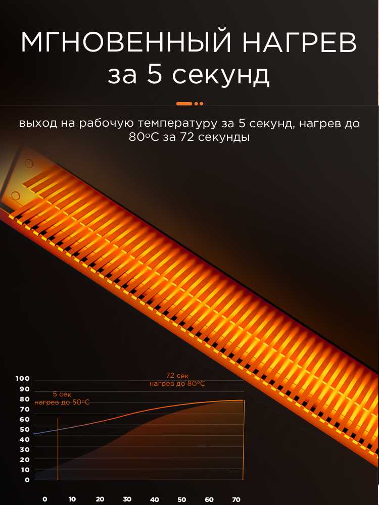 Скорость и интенсивность нагрева являются ключевыми преимуществами данной модели согласно отзывам. Пользователи единогласно подтверждают, что обогреватель начинает отдавать тепло практически мгновенно, через 2-3 секунды после включения. Это кардинально отличает его от масляных радиаторов, которым требуется значительное время на прогрев. Эмпирические данные, приведенные в отзывах, демонстрируют высокую эффективность: на неутепленной лоджии площадью 6 кв.м с холодным остеклением и температурой -10°C, устройство за один час работы на максимальной мощности (2000 Вт) поднимает температуру до +20°C. На мощности 1200 Вт температура достигает +10°C, а на 800 Вт — +5°C. В стандартных жилых помещениях результаты еще более впечатляющие: комната 16-18 кв.м прогревается за 5-20 минут, а помещение площадью 24-28 кв.м комфортно обогревается на мощности 800-1200 Вт. Важно отметить, что эффективность напрямую зависит от теплоизоляции помещения; в хорошо утепленных комнатах он создает комфортные условия, тогда как для обогрева улицы или сильно продуваемых пространств мощности может быть недостаточно.