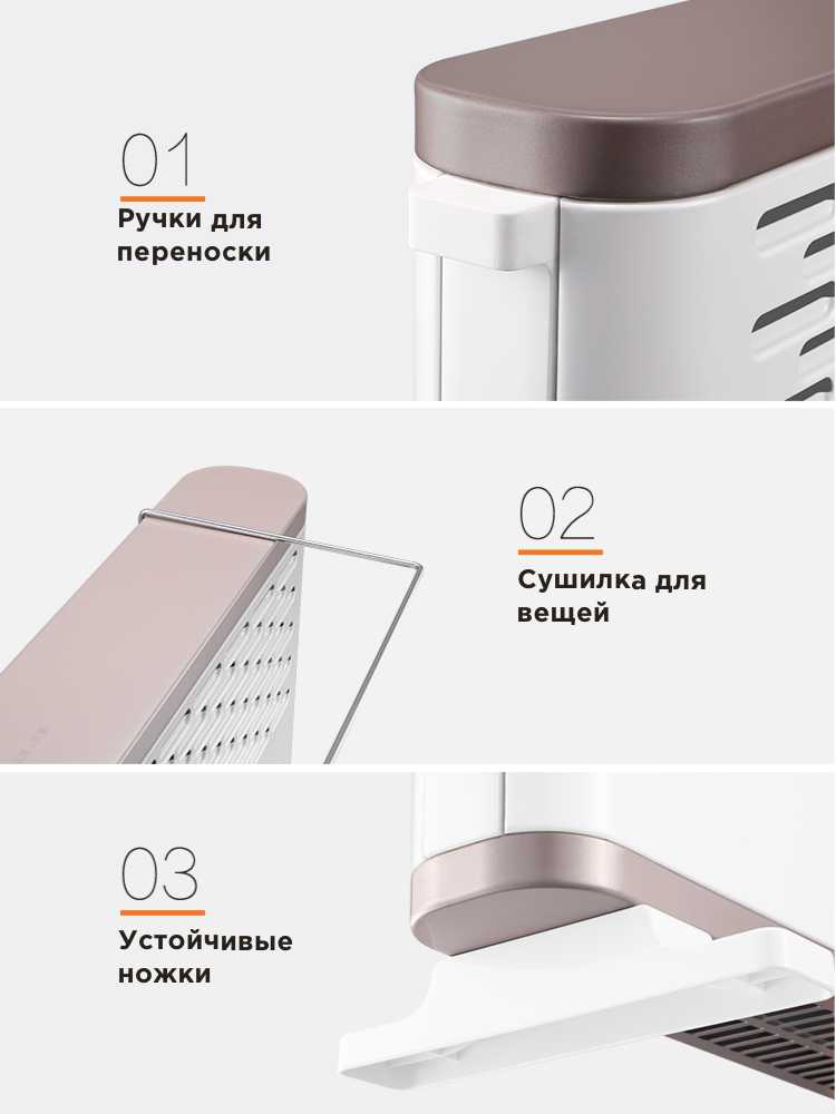 Системы безопасности включают в себя защиту от перегрева и датчик опрокидывания. Последний иногда интерпретируется пользователями как посторонний гремящий предмет внутри корпуса, но на самом деле это штатный предохранительный механизм. При случайном падении устройства датчик размыкает цепь и отключает нагрев. Защита от перегрева срабатывает при достижении критических температур, предотвращая повреждение прибора и возгорание. Эти функции делают его безопасным для households с детьми и животными. Дополнительным плюсом является наличие металлической скобы-сушилки сверху корпуса, которая позволяет быстро просушить мелкие вещи (носки, перчатки, легкую одежду) без риска возгорания, так как температура в этой зоне невысока.