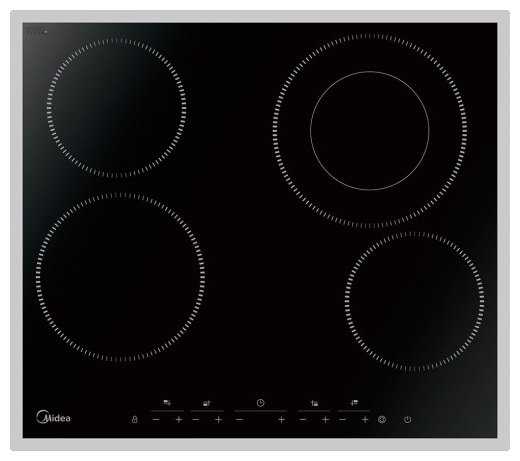 Варочными панелями пользуемся уже почти 15 лет. Это наш не первый опыт использования такой техники, до этого пользовалась Gorenje SVK62TS. Но перегорела одна конфорка. Приехал мастер и стал аккуратно вынимать панель из столешницы, но так как был небольшой скол на краю панели, то пошла трещинка от него. При этом мастер предупреждал, что такое может произойти.((( А если бы была рамка, то такого не случилось. Поэтому выбирая новую панель, мы искали только с рамкой. Также решили взять недорогую модель, но обязательно с SCHOTT CERAN. При выборе панели были ещё несколько условий, это наличие расширения хотя бы на одной конфорки (конфорка с двойной зоной расширения), защитное автоматическое отключение, защита от перегрева, простое и понятное управление. Все эти условия и есть в Midea MCH64464X. Установка прошла без проблем, благодаря стандартным размерам и наличию сетевого шнура. Расположение зон нагрева таково, что позволяет находиться на панели сразу нескольким предметам(кастрюли и сковороды). Понятное и простое сенсорное управление для каждой конфорки отдельное. При включении конфорки устанавливается режим нагрева -5+, а далее можно или добавлять(до 9), или уменьшать, в зависимости от задач, при этом панель находиться близко к переднему краю, поэтому нет её нагрева в этом месте. Кстати, металлическая рамка тоже не нагревается. Для тех, кто пользуется таймером, он есть для каждой зоны - до 99 мин. Есть кнопка блокировки панели для защиты от детей или случайного включения(очень чувствительная). После отключения, горят мигающие индикаторы остаточного тепла «Н». Общая мощность панели 6,4кВт. Имеет следующее распределение: Передняя правая: 16,5см(1,2кВт), Передняя левая 20см(1,8кВт), Задняя правая: 14см/23 см(1,0/2,2кВт), Задняя левая: 16,5см(1,2 кВт). Да, вот, что повлияло еще на выбор. Как оказалось, под этим брендом выпускается очень много и другой качественной техники. И конечно акции в Эльдорадо. Покупалась данная панель по акции утилизации и начислении 2х бонусов при онлайн оплате. Воспользовались также предложением «Нашли дешевле» (Начисление по акции 110%). ))) Нашли данную модель дешевле, чем в Эльдорадо. Отправили ссылку. Нам перезвонили и сделали скидку. Обязательно сделайте это до оплаты, а иначе, если оплатили, то только бонусами на карту с зачислением сразу. Покупкой пока довольны. Рекомендуем.