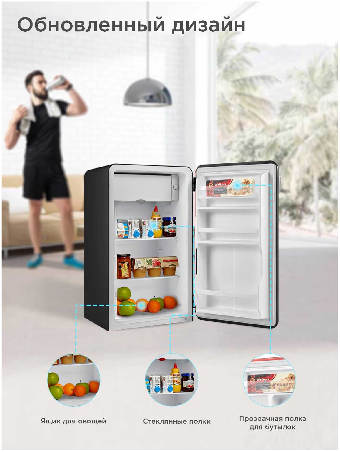 - + Мини холодильник стилизованные под технику 60-х, есть морозилка, легкий по весу, мы его вдвоём с мамой взяли на руки и загрузили в машину