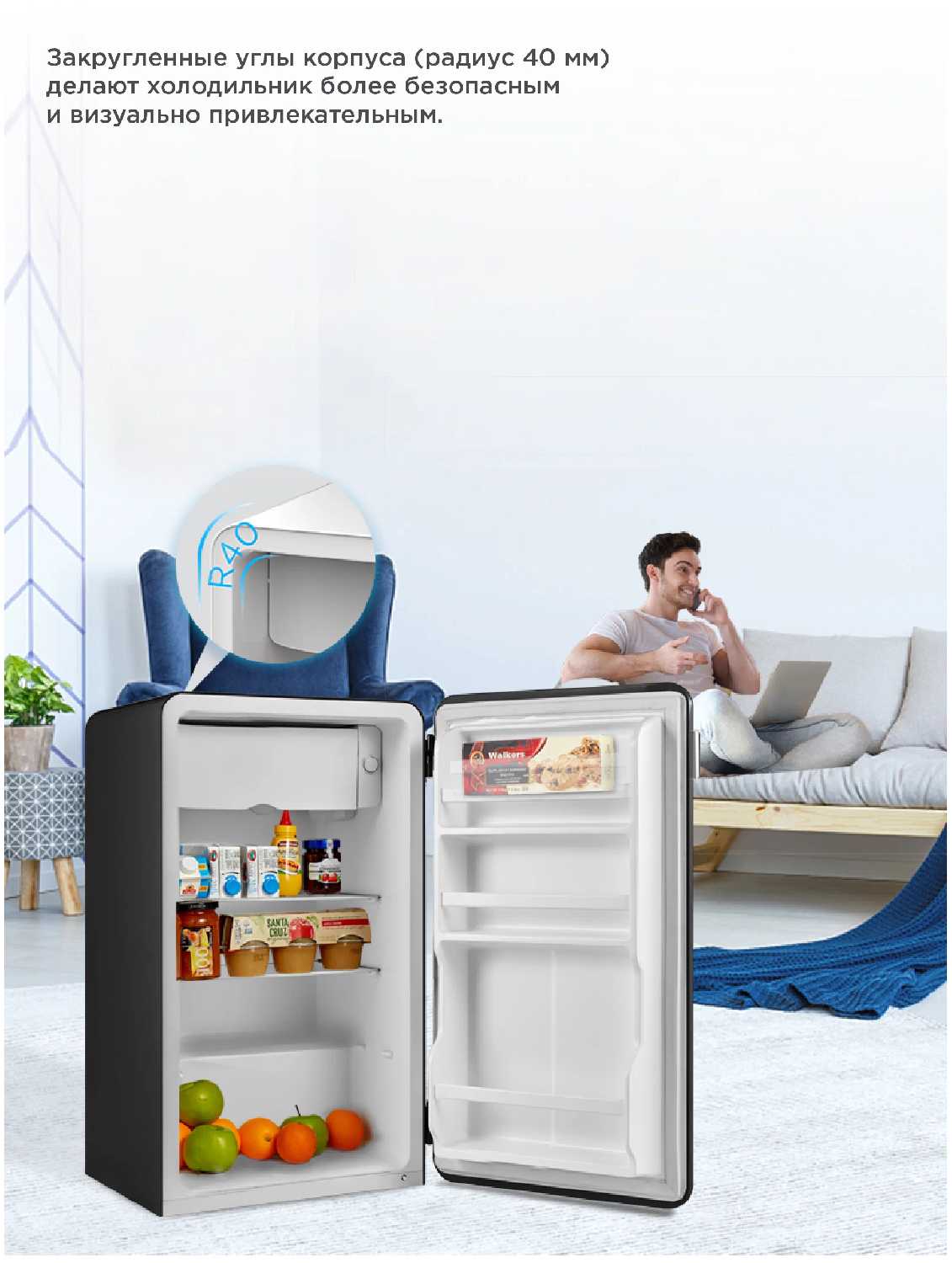 - + Мини холодильник стилизованные под технику 60-х, есть морозилка, легкий по весу, мы его вдвоём с мамой взяли на руки и загрузили в машину