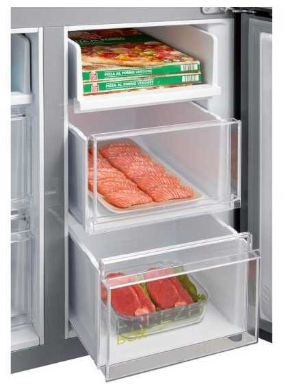 - очень удобно , что холодильник единой и широкой камерой наверху и две морозилки внизу