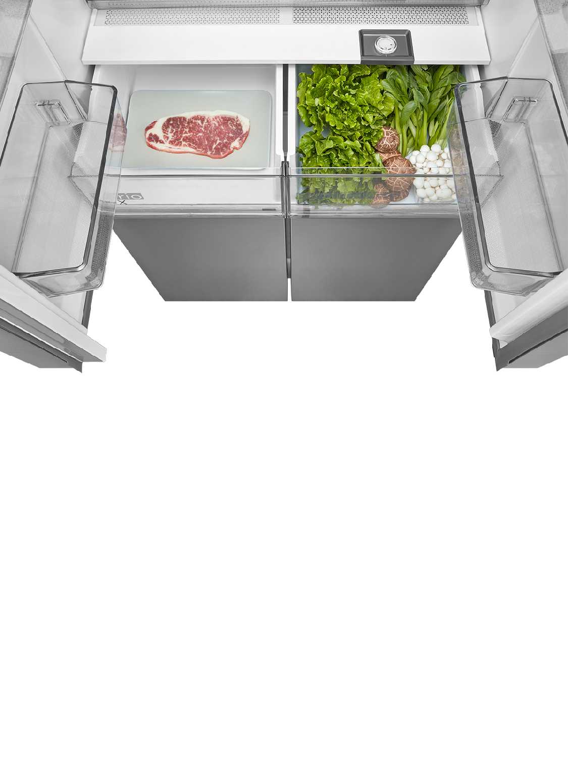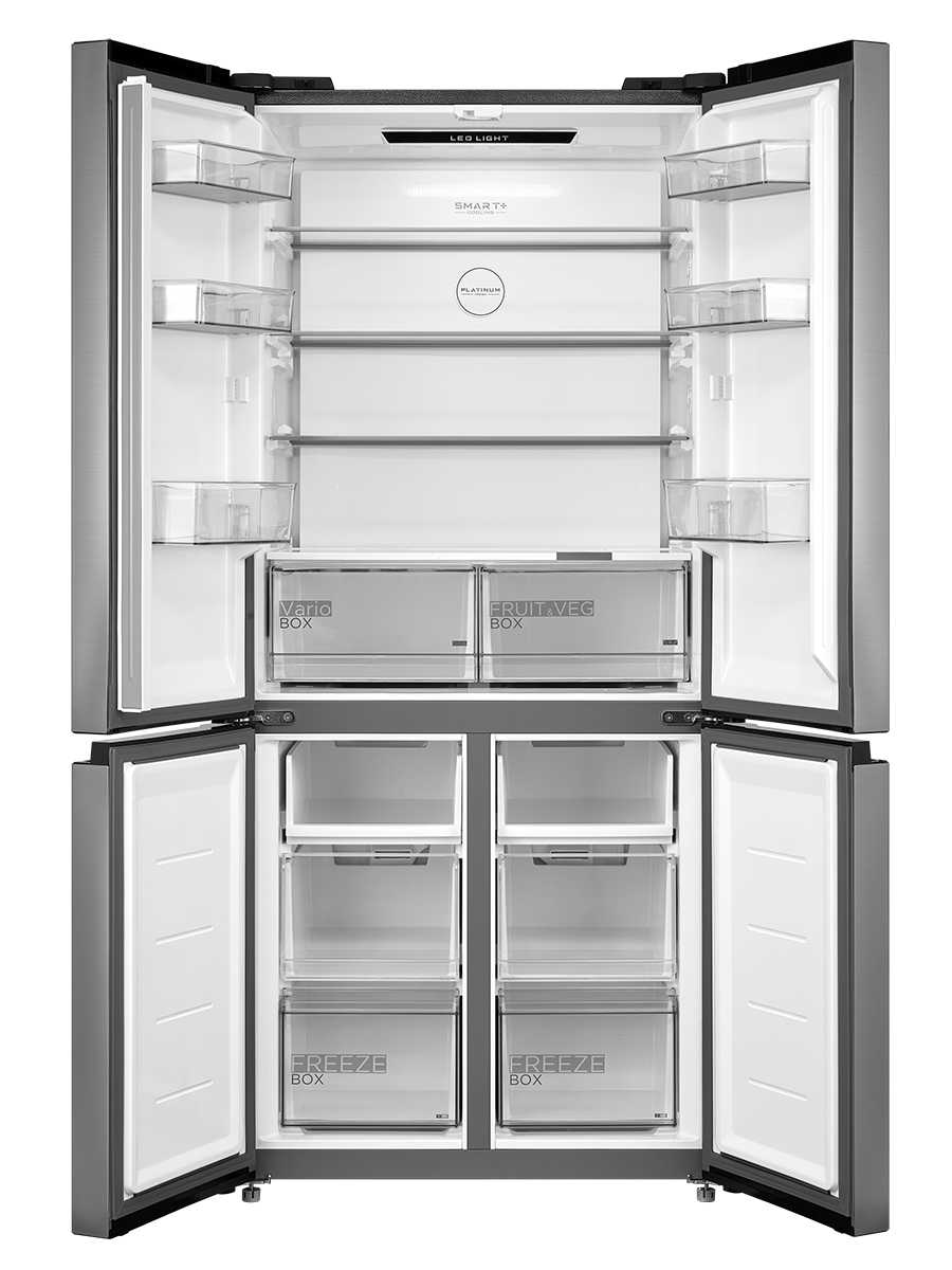 - Зоны свежести с контролем влажности продлевают срок хранения овощей, фруктов и скоропортящихся продуктов.