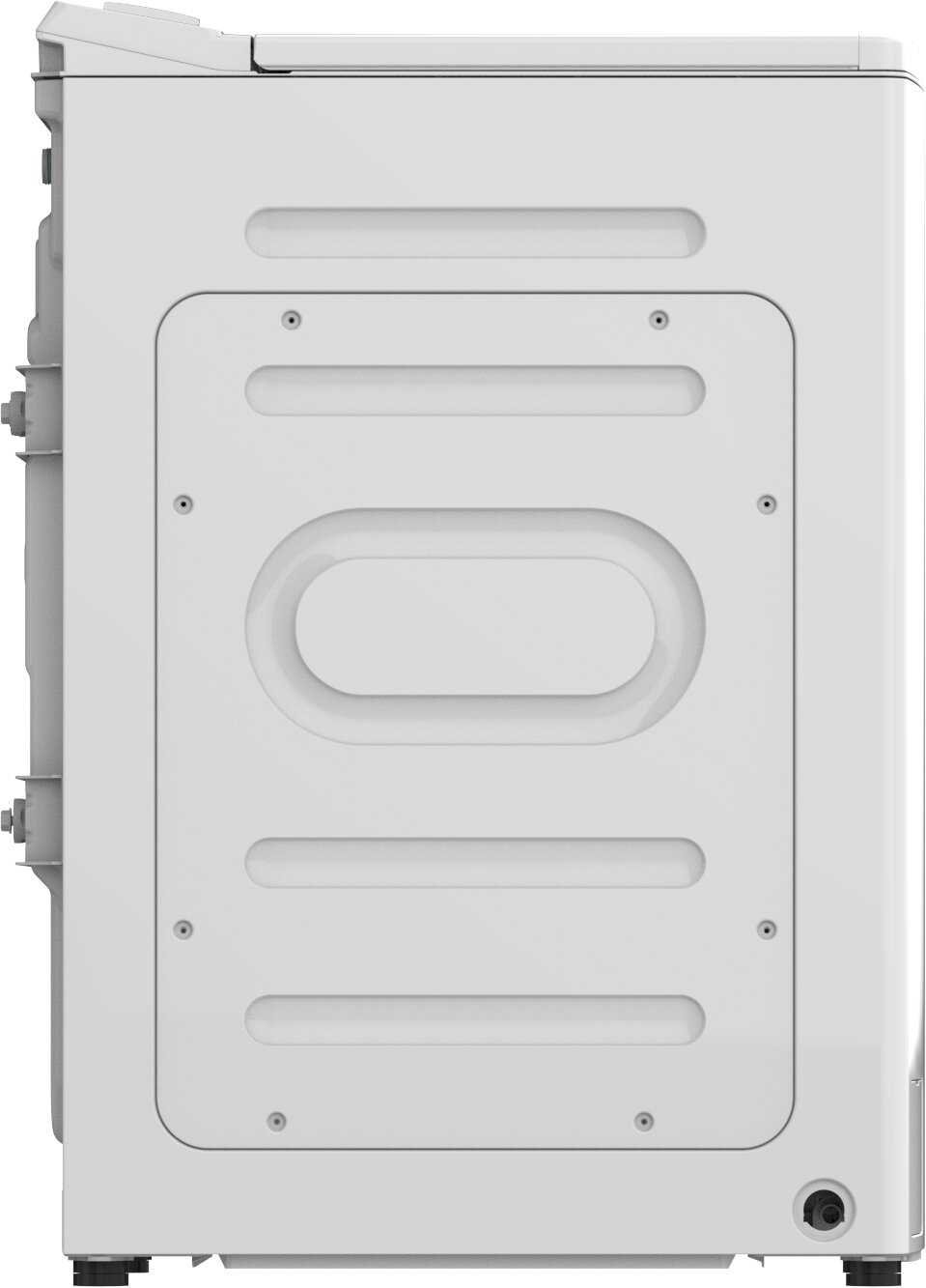 Глубина машинки с подключёнными шлангами достигает 62 см, что может потребовать частичного демонтажа панелей при установке в узкие проёмы. Габариты корпуса — 85×59.5×56.5 см. Для устойчивости критично выравнивание ножек по уровню. -
