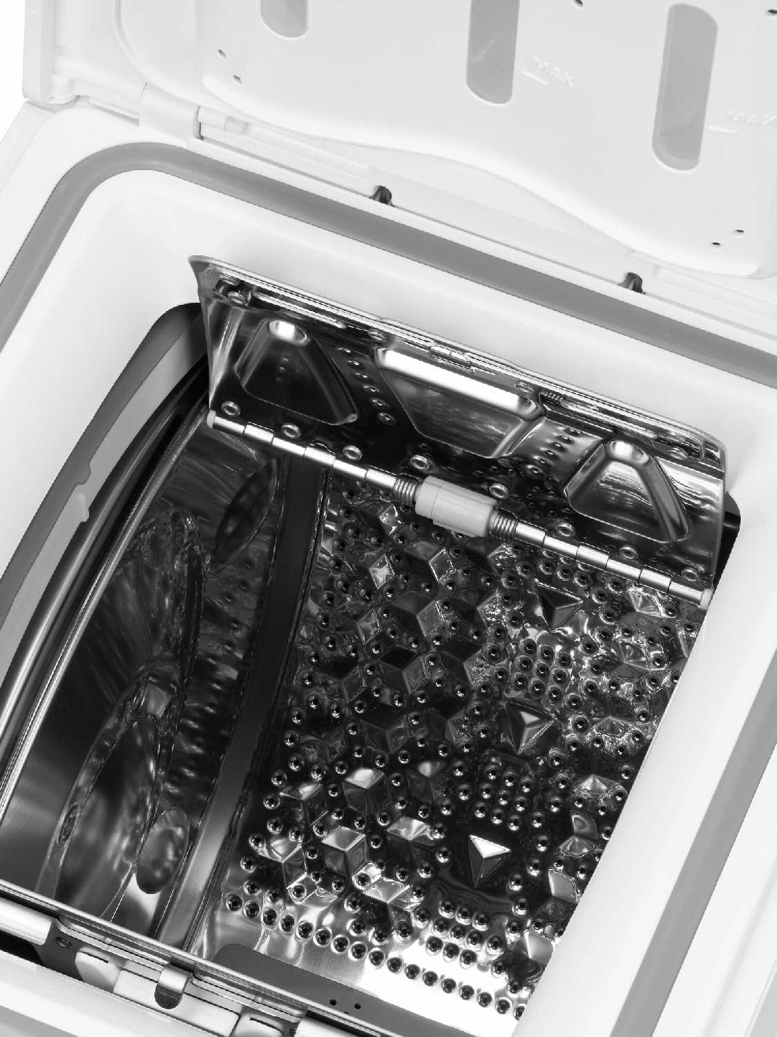 - Вместительный барабан на 8 кг с вертикальной загрузкой: