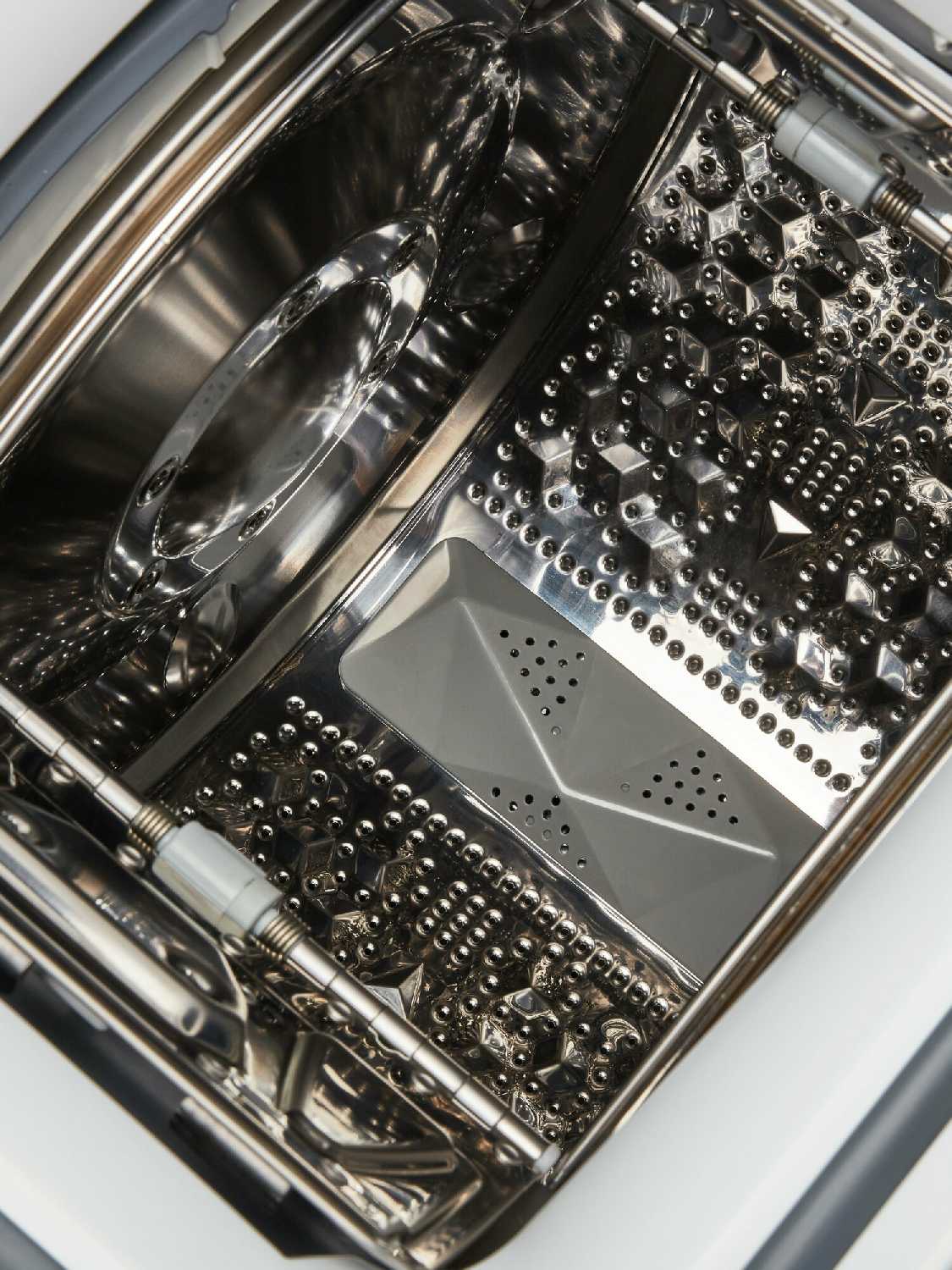 - Отсутствие вибраций даже на максимальных оборотах (1300 об/мин) благодаря инверторной технологии и качественной балансировке барабана.