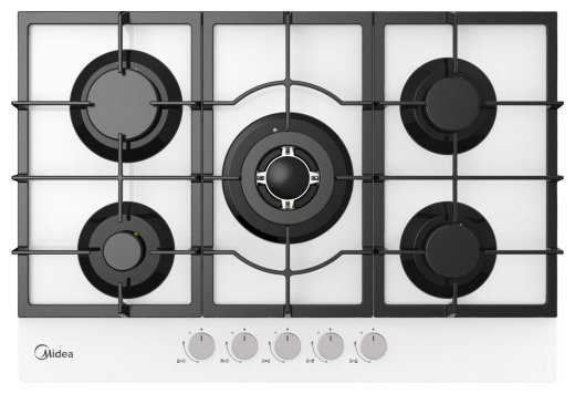 - + 5 конфорок, подходит для большой семьи, сделана из закаленного стекла, легко ухаживать за ней, решетки чугунные