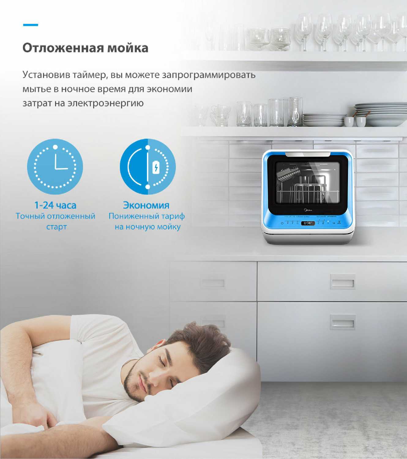 Режим позволяет запустить мойку в удобное время, например, ночью для экономии электроэнергии. Однако учтите, что посуда с остатками еды не должна долго находиться в машине — это может вызвать неприятный запах. Для ежедневного использования лучше сразу запускать цикл после загрузки. -