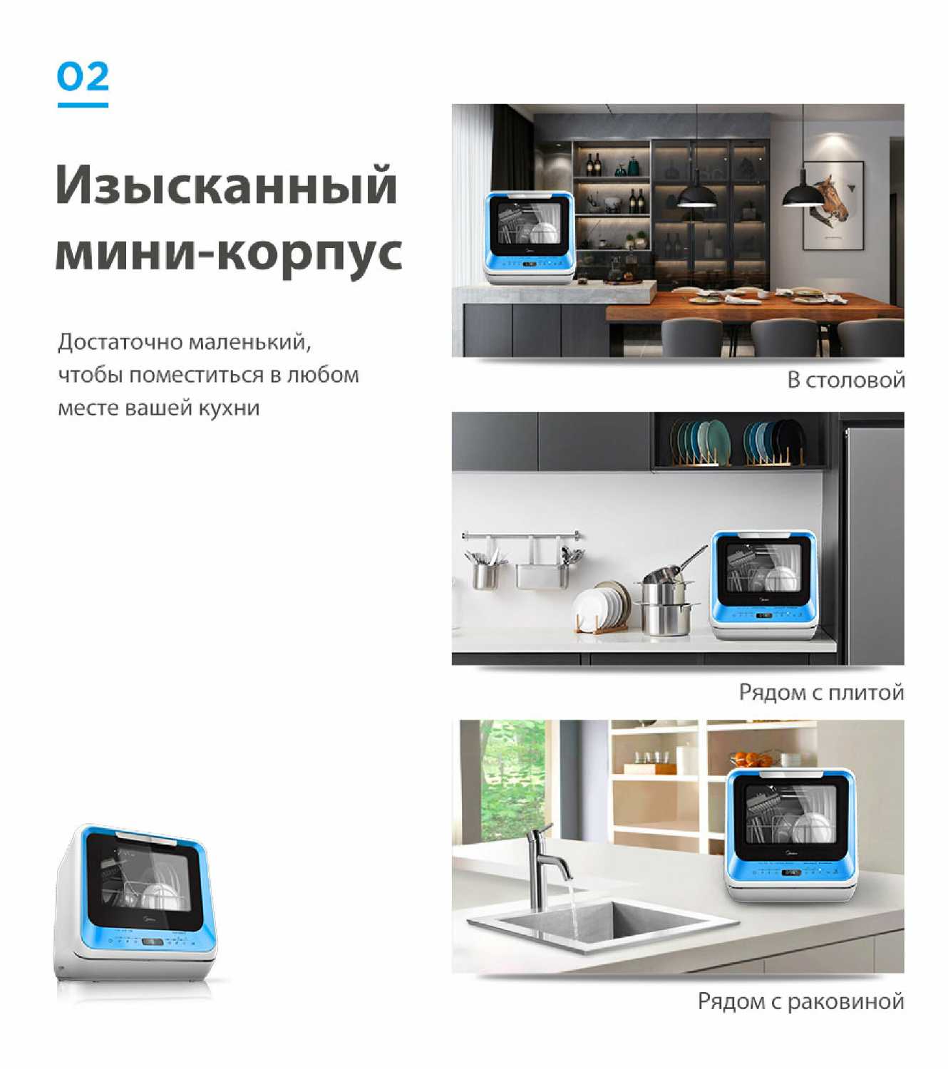 - + Компактный размер идеально подходит для небольших кухонь и ограниченного пространства.