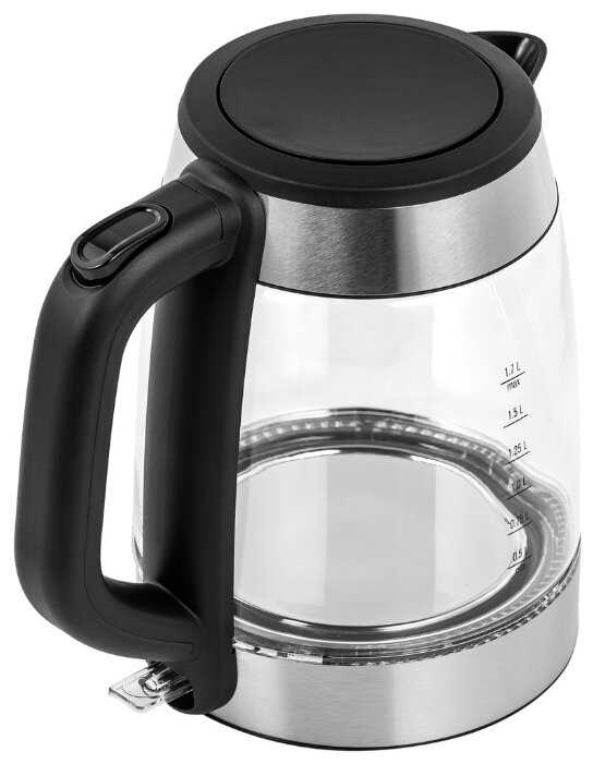 Сравнивал с кнопочным GEMLUX GL-EK895GC который дороже - у него крышка может со временем вылетать (см отзывы), и ручка в верхней части идет прямо через стеклянную колбу, и со временем там будет конденсат в панели управления (есть отзывы), и у верхней части колбы есть метал обод внутри, который будет влиять на выливание воды и вообще ржаветь.