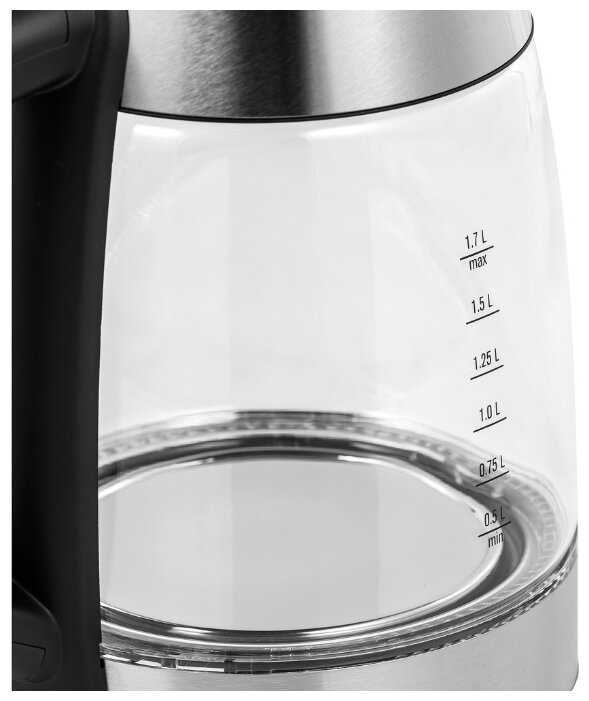 - Прозрачная колба позволяет легко видеть уровень воды и образование накипи, что упрощает контроль и уход.