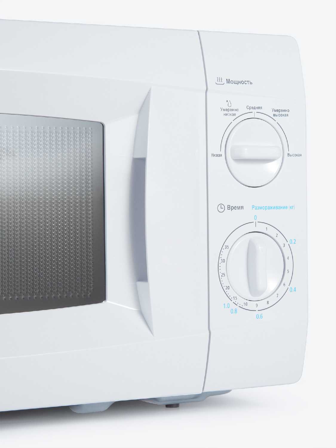 Целевое применение и пользовательские сценарии: Устройство оптимально подходит для базовых задач разогрева и разморозки пищи в условиях офиса, дачи или малогабаритной кухни. Компактные размеры при внутреннем диаметре подставки 255 мм позволяют размещать глубокие тарелки с крышками. Отсутствие дополнительных функций (гриль, конвекция, программируемые режимы) соответствует потребностям пользователей, которые не используют эти возможности в повседневной эксплуатации. Простота управления делает модель доступной для пожилых людей, а механическая реализация таймера исключает типичные проблемы электронных систем. Подсветка камеры работает только во время работы устройства, что позволяет оставлять дверцу открытой для проветривания без потребления энергии. Звуковой сигнал завершения работы характеризуется как громкий и четкий, но отсутствие функции кратковременного включения (30 секунд) ограничивает возможности точного контроля при разогреве небольших порций.