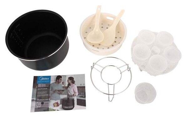 - В набор входят стаканчики для йогурта (6 шт.), металлическая решетка для пароварки, мерный стакан (160 мл).