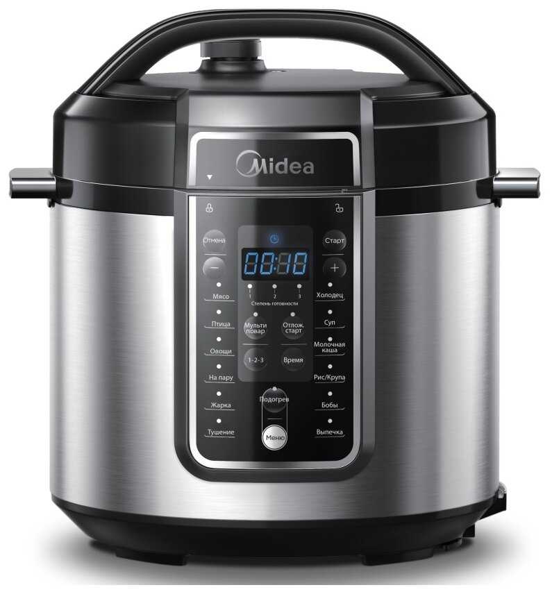 - Мощность 1000 Вт обеспечивает быстрый набор давления (5-15 минут в зависимости от блюда).