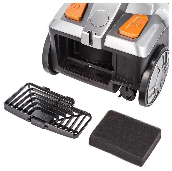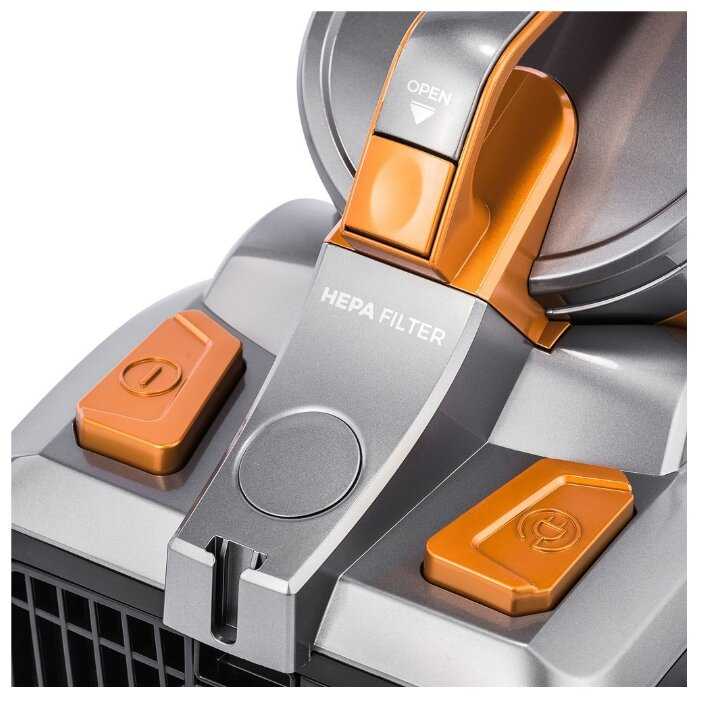 - Отсутствие отдельной ручки на корпусе вынуждает перемещать пылесос за шланг или толкать ногой.
