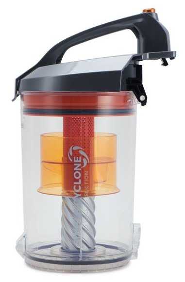 - Система циклонов предотвращает быстрое засорение фильтров — мусор компактно оседает в нижней части.