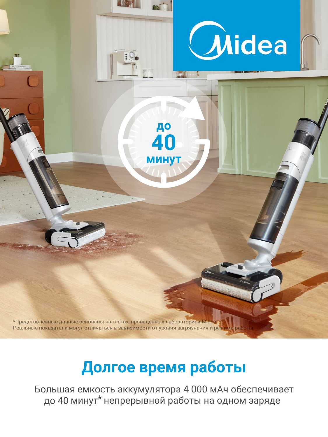 - Время работы от аккумулятора: 40 мин.