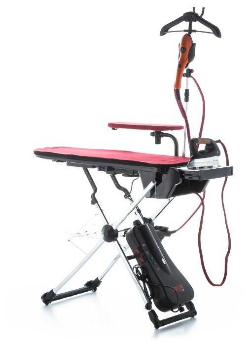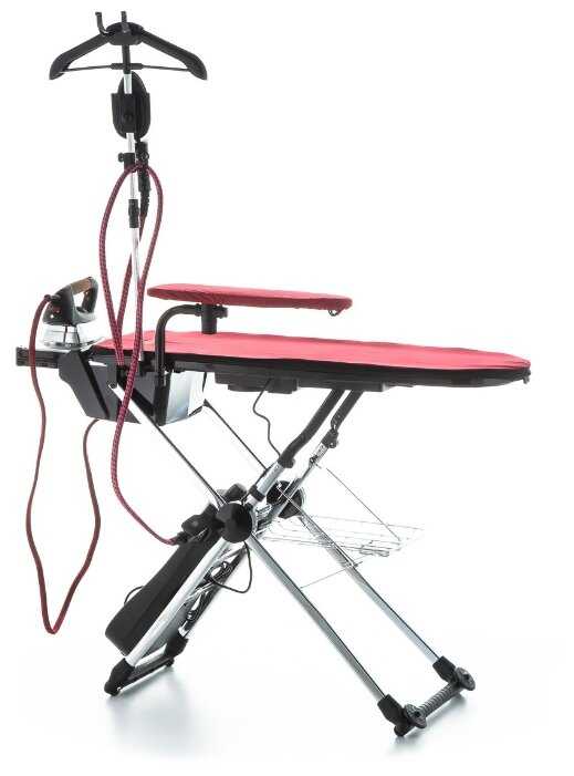 - + Удобная, с отсеком для хранения утюга. Пар сильный. Гладить одно удовольствие. Много полезных аксессуаров...