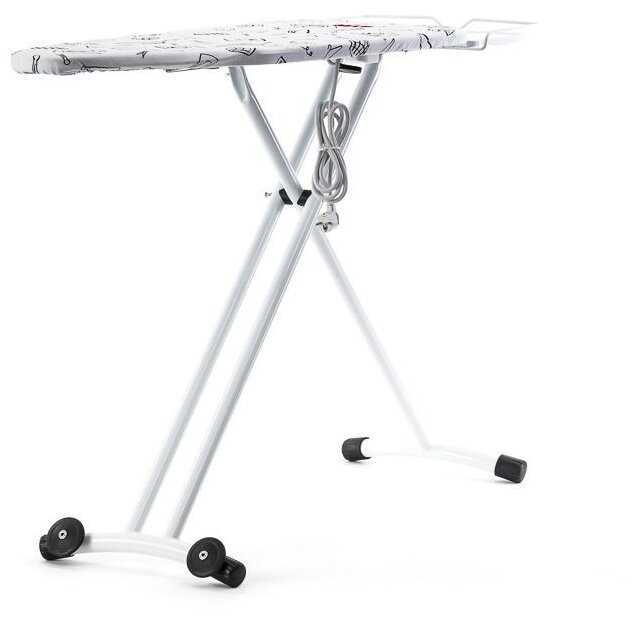 Отличная доска, была куплена взамен старой, громкой при раскладывании. Эта доска тихая, раскладывается мягко, отлично перемещается на колёсиках, которые установлены внизу.