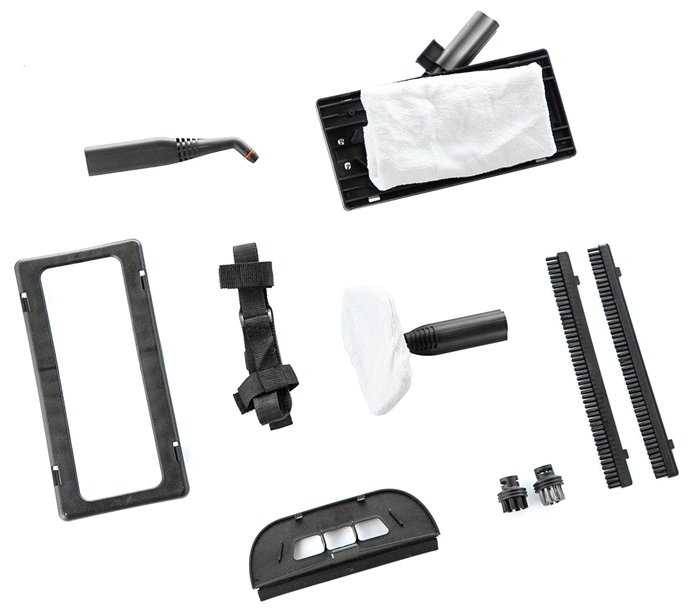 - Длинный паровой шланг (1.5 м) и телескопическая трубка позволяют обрабатывать высокие окна и труднодоступные зоны.