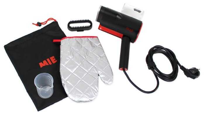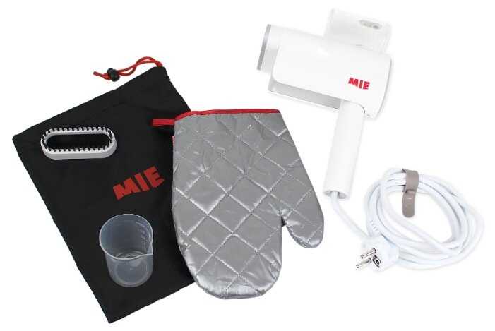 В комплекте: термоперчатка, фирменный мешочек для хранения отпаривателя, мерный стаканчик, насадка на отпариватель. - - Изредка «плюётся» водой, но не критично. Немного неудобно, когда отпариваешь горизонтально и вода как бы уходит вниз, приходится часто подливать воду, так как дырочка расположена «сверху» бака.