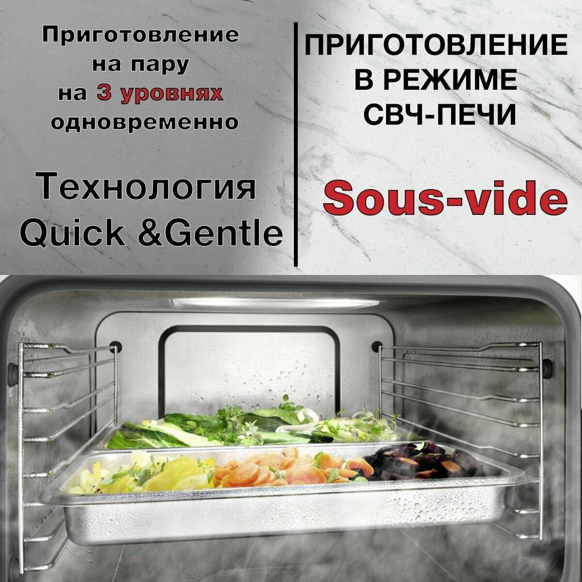 Полноценная замена большинству устройств на нашей кухне. У неё 20 режимов работы, включающие от обычного парения овощей и заканчивая гриль, конвекция, попкорн и несколько под определенные продукты. Она даже размораживать и разогревать может! Так что большую часть меню мы подогнали под нее. У нас шеф приверженец здорового питания, так что он доволен теперь.