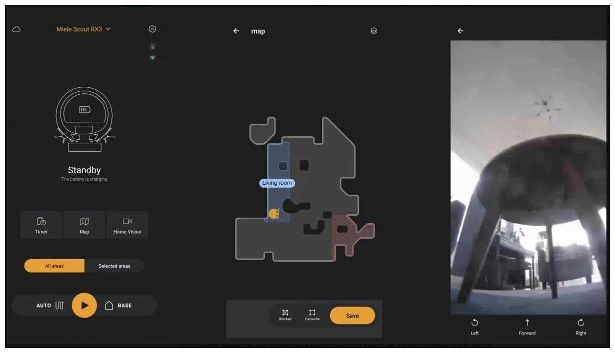 возможность подключения электрощетки, ограничение времени уборки, построение карты помещения, программирование по дням недели, расчет времени уборки, сигнал при застревании, сигнал при разрядке аккумулятора, таймер