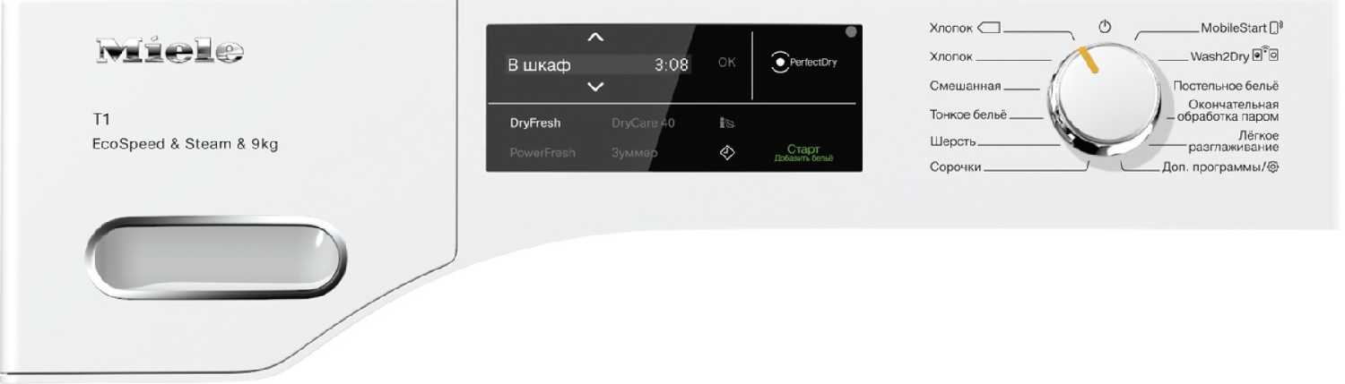 Дополнительная информация : | Miele@home, WiFiConn@ct, Блокировка ПИН-кодом, Wash2Dry, система шумоподавления, емкость для сбора конденсата, встроенная система отвода конденсата |