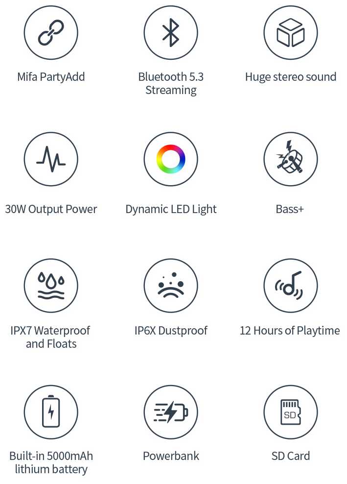 Характеристи MIFA WildRod 20Вт Уровень пыле и влагозащиты IP67|Беспроводное соединение 100+ устройств