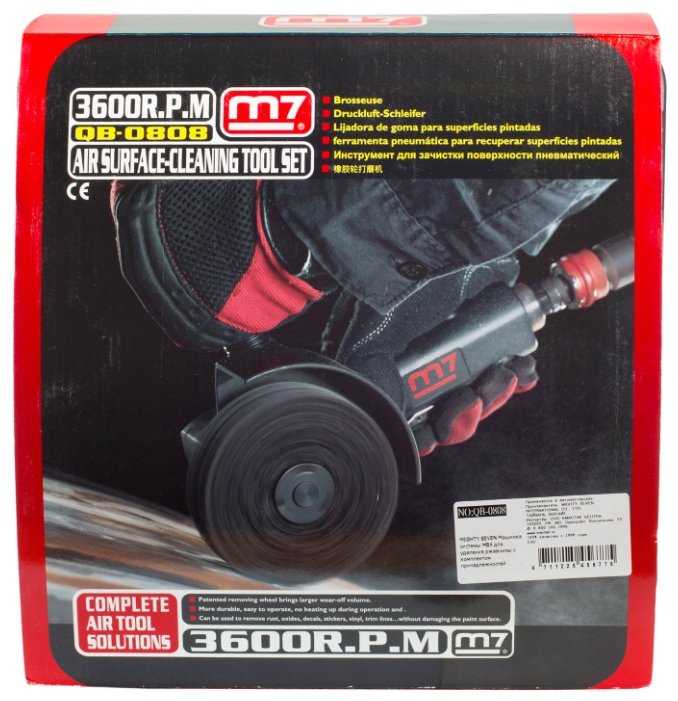 | Комплектация : | адаптер для щеток MBX Mighty Seven QB-9400 - 1 шт., щетка мягкая MBX Mighty Seven QB-9411 - 1шт., щетка жесткая MBX Mighty Seven QB-9412 - 1шт., ластик резиновый MBX Mighty Seven QB-9414 - 1шт., круг зачистной MBX Mighty Seven QB-9415 - 1шт., боковая рукоятка - 1 шт., штуцер - 1 шт., комплект крепежа - 1шт. |