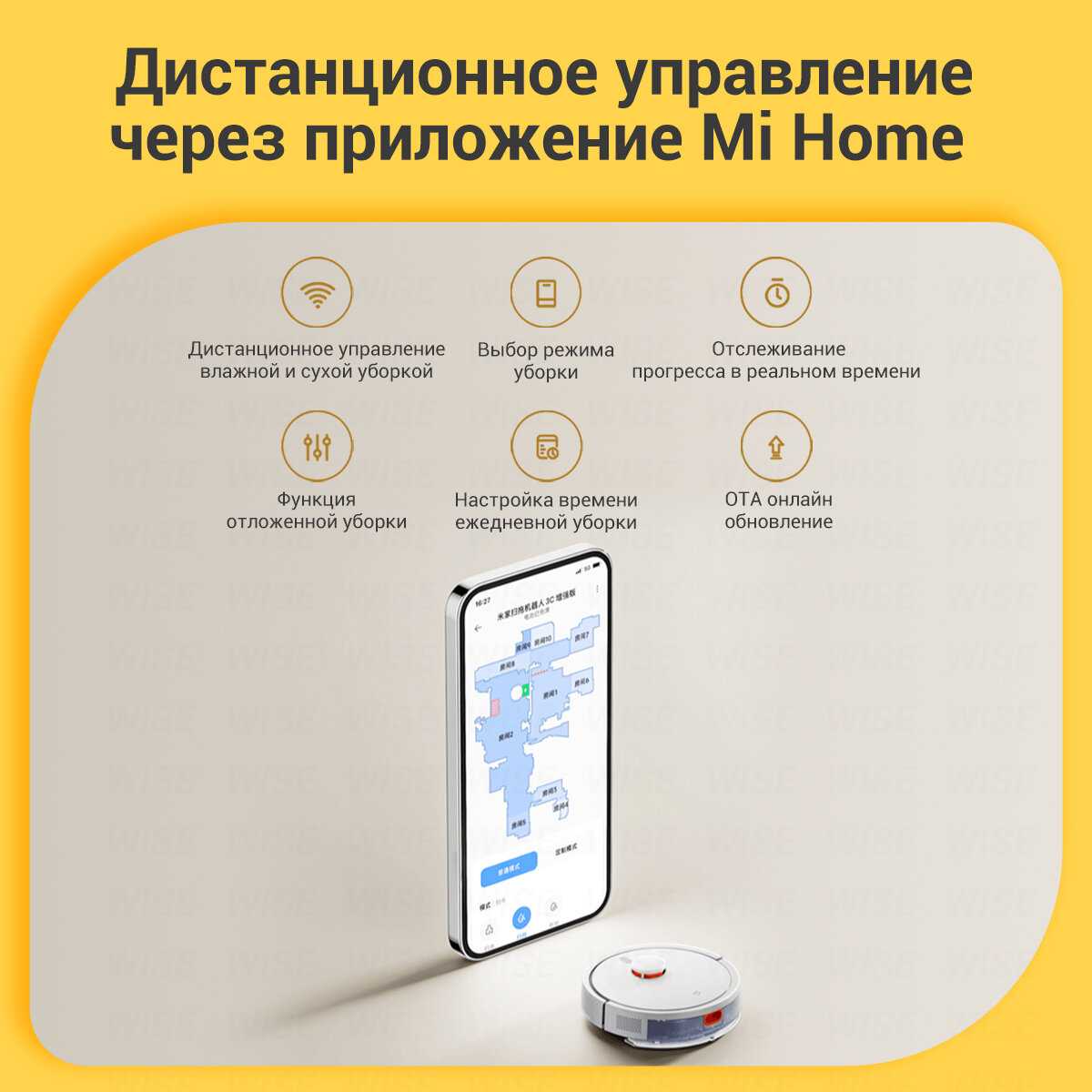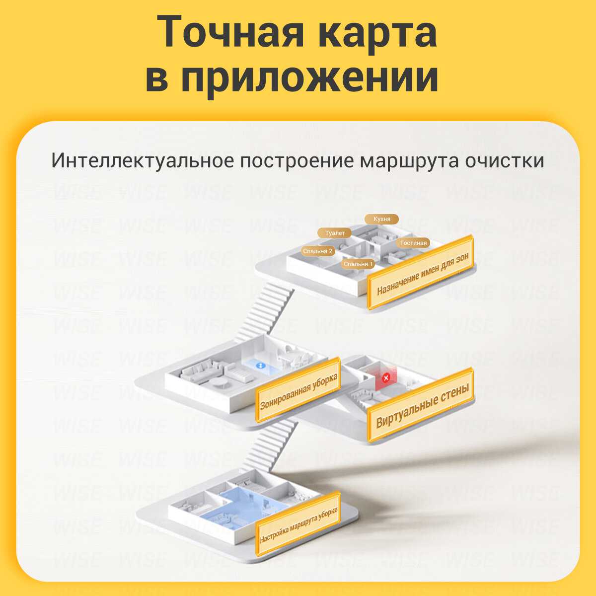 Много настроек чистки: можно выбрать мощность всасывания, расход воды и режим чистки (с мойкой или без). Очень нравится, как он строит карту, можно поставить виртуальных стен, чтобы он не лез в отдел шкафа, где куча шмота на полу, или поставить область, где не нужно мыть придверный коврик.