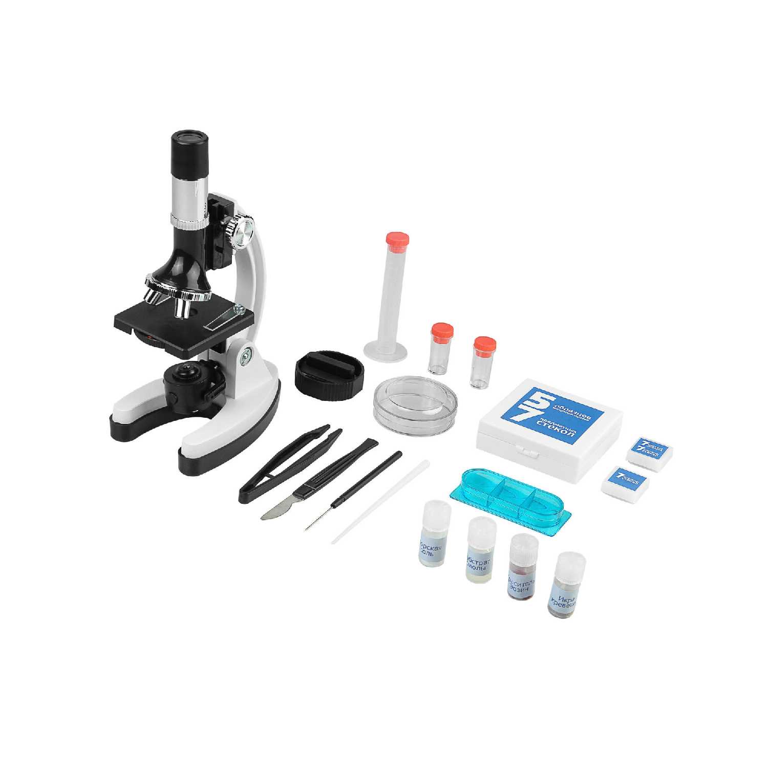 Подробная комплектация : | Микроскоп Микромед 100x-1200x с окулярным тубусом, окуляром, механизмом фокусировки, револьвером с 3 объективами, блоком подсветки с установленной батарейкой, предметным столиком, диском с диафрагмами – 1 шт Жесткий кейс с отделениями – 1 шт Скальпель - 1 шт Игла препарировальная - 1 шт Мешалка пластиковая - 1 шт Мерный цилиндр полимерный с делениями - 1 шт Пробирки полимерные для сбора образцов - 2 шт Пинцет пластиковый - 1 шт Покровное стекло полимерное (круглое) - 7 шт Покровное стекло полимерное (квадратное) - 7 шт Предметное стекло - 7 шт Чистая наклейка для образцов - 7 шт Готовые образцы микропрепаратов - 5 шт Микротом (Нож для приготовления срезов препаратов) - 1 шт Чашка Петри полимерная - 1 шт Флакон с субстратом смолы - 1 шт Флакон с красителем эозин - 1 шт Флакон с морской солью - 1 шт Икра ракообразных (артемии) - 1 шт Инкубатор для выращивания артемий - 1 шт Гарантийный талон – 1 шт Руководство на русском языке – 1 шт |